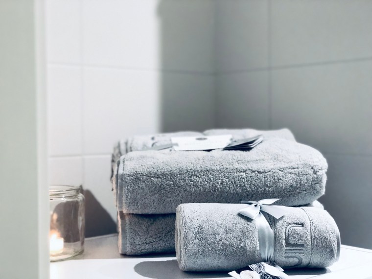 Mietin tossa yks päivä meidän kylppärin tilannetta ja pohdin, että jos nyt ostaisi laadukkaammat pyyhkeet pidempää ikää ajatellen ja kriteerinä oli jättikoko sekä pehmeys. Vertailin ja pohdin erilaisten pyyhkeiden välillä ja lopulta päädyin Luin Livingin Grandepyyheisiin. Nämä ovat kokoa 100×180 cm, joten ihan parasta on kietoutua näihin suoraan saunan jälkeen. 🙂