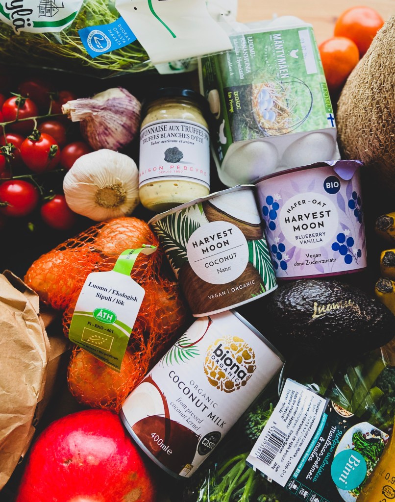 Kävin viikonloppuna ostamassa muutamalle päivälle perus juttuja. Olenkin puhunut täällä aikaisemmin omasta ruokavaliosta ja siihen liittyvistä arvoista – mikään ei ole oikeastaan muuttunut. Syön edelleen hyvin luonnonmukaisesti(mikä toisaalta enää on luonnonmukaista?) ja pyrin yhä löytämään tapoja syödä kehoani kunnioittaen.
